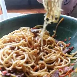 加上调料翻炒均匀即可。吃的时候,倒入菠菜面的上面
