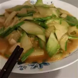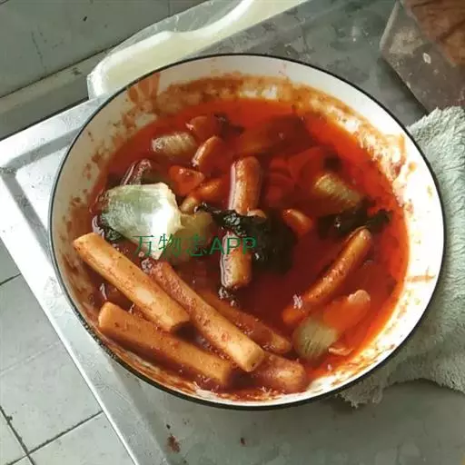 配 料: 年糕、洋葱、小油菜、葱、白沙糖、油、辣肠。
