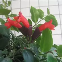 口红花 G.Don)是苦苣苔科,芒毛苣苔属常附生小灌木,茎长可达100厘米,圆柱形,叶对生,叶片革质,…
