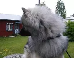 长形头部,有点大。颅顶明显拱起,两耳间不太宽阔,两眉间适度较窄。额上有轻微的皱纹。颊部不凸出。鼻梁直,颚部健壮,嘴唇接合良好。牙齿剪状或水平咬合。眼睛中等大小,眼窝较深,眼神温和,蓝灰色披毛的眼睛棕色或较深到黑棕色;咖啡色披毛的眼睛琥珀色或较深颜色。鼻子较大,发育良好,蓝黑色狗的鼻子呈黑色,咖啡棕色的鼻子呈黑棕色。耳朵中等大小,耳根较高,呈三角形前折,紧贴颊部悬垂。