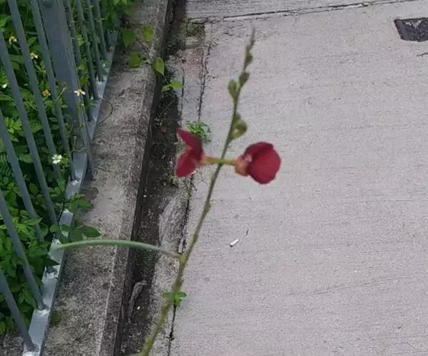 花序长3.5-15厘米,总花梗长15-40厘米;花成对稀疏地生于花序轴的上部;花萼管状钟形;萼齿短三角形;花冠紫红色,旗瓣近圆形,长1.5厘米,有时染绿,翼瓣长约2厘米,具白色瓣柄,龙骨瓣先端旋卷。荚果线形,长5.5-10厘米,宽2-3毫米,密被短柔毛,内含种子18-30颗;种子斜长圆形,棕色或具棕色及黑色斑,长约3毫米,具凹痕。花期7月,果期9-11月。