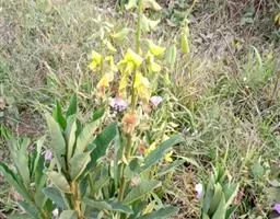 一年生或二年生直立草本,高0.6-1.5米,有时蔓生或缠绕,茎密被短柔毛。羽状复叶具3小叶;托叶披针形,长5-10毫米,脉纹显露;小叶狭椭圆形至卵状披针形,长3-8厘米,宽1-3.5厘米,先端急尖,基部楔形,上面无毛,下面密被短柔毛或薄被长柔毛,无裂片或微具裂片;叶柄长1.5厘米。