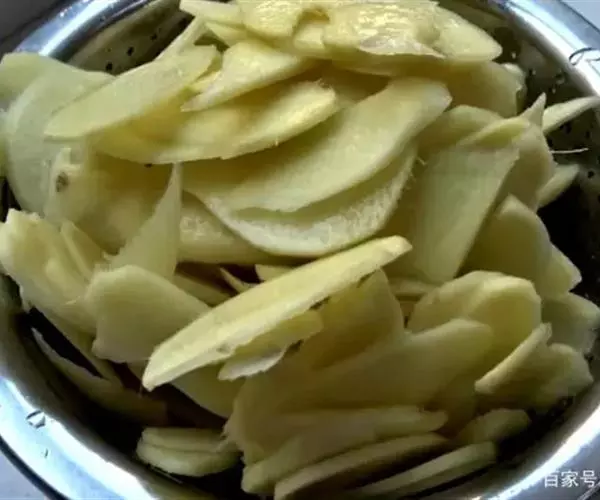 2:把五花肉扑上生粉,放5成热的油锅里炸熟,捞起,再烧热油锅炸至金黄色,再捞起备用