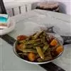(2)先起油锅,加热后放入蒜末爆香随即放入材料(2)及(1)略炒后,再将调味料(3)放入(太白粉水最后放入),翻炒均匀后,即可起锅盛入便当中。