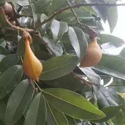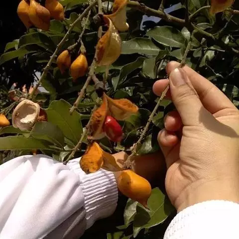 海南红豆结果时间较迟,且有大小年之分。单株产果量15~25kg不等。其果熟期可从11月中旬一直延续到次年1月下旬。采种应于12月上中旬当果实盛熟时采收肥大饱满呈橙黄色荚果,置于太阳下 海南红豆的豆荚 暴晒至自行开裂脱出艳红色种子。出种率12%~13%,种子千粒重968~1168Kg。处理好的种子切忌暴晒,稍阴干即可播种,最好是即采即播,否则会降低发芽势和发芽率。如需贮藏,需剥去或置于水中搓擦洗去红色种皮,伴以细沙或椰渣用薄膜袋密封可贮藏1~2个月。如不及时处理,半个月以内即霉烂甚至失去发芽力。