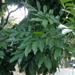 树皮灰色或灰黑色;木质部有粘液。幼枝被淡褐色短柔毛,渐变无毛。奇数羽状复叶,长16-22.5厘米;叶柄长2-3.5(6.5)厘米,叶轴长2.5-9厘米,叶轴在最上部一对小叶处延长0.2-2.6厘米生顶小叶;小叶3(-4)对,薄革质,披针形,长12-15厘米,宽约4 (-5)厘米,先端钝或渐尖,两面均无毛,侧脉5-7对;小叶柄长3-6毫米,有凹槽及短柔毛或近无毛。