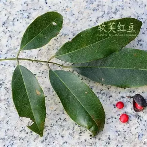 海南红豆,学名:Ormosia pinnata (Lour.)Merr.,为豆科、红豆属常绿乔木或灌木植物,高3-18米,稀达25米,胸径30厘米。原产中国海南,圆锥花序顶生,花冠淡粉红色带黄白色或白色。果实为荚果,内有红色的种子。
