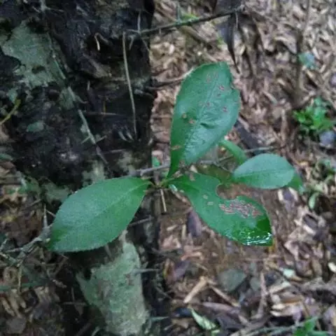待树苗基本出齐时(约经过30天),应小心揭去覆草,防止将树苗拔出。树苗密度过大的应及时间苗,时间在5月份,密度过小的应及时移栽或补种。将间下的苗按20厘米×20厘米的株行距栽植,随栽随浇水,以保证较高的成活率。每半个月施1次尿素或三元复合肥,每亩用量约为4千克。天旱时及时灌溉,涝时及时排水。苗床期常见的病虫害有立枯病、猝倒病和蛴螬、地老虎等,应及时防治。还要防止鸟兽为害树苗。