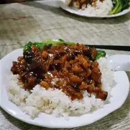 猪脚饭,感觉入口软烂无渣、肥而不腻、香气四溢、胶棉而不沾牙,达到了落口消融的境界,肘子丰富的胶质和蹄筋“筋、骨、肉的的错综复杂”体现得淋漓精致,真是大饱口福,果然名不虚传。