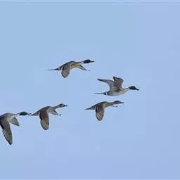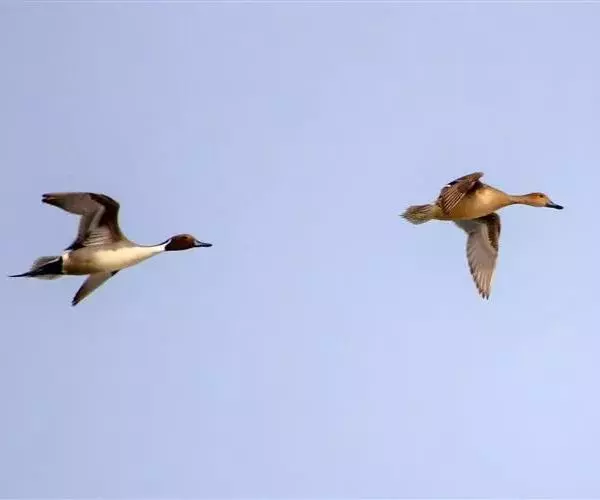 针尾鸭 越冬期栖息于各种类型的河流、湖泊、沼泽、盐碱湿地、水塘以及开阔的沿海地带和海湾等生境中,繁殖期主要栖息于内陆大型湖泊、流速缓慢的河流、河湾及其附近的沼泽和湿草地。
