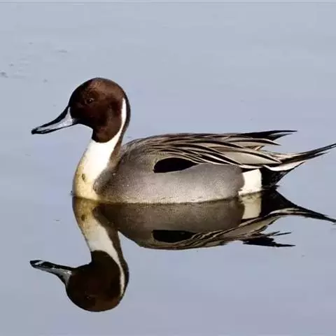 针尾鸭(学名:Anas acuta):是鸟纲、鸭科的中型游禽,属水鸭类。体长43-72厘米,体重0.5-1千克。雄鸭背部满杂以淡褐色与白色相间的波状横斑,头暗褐色,颈侧有白色纵带与下体白色相连,翼镜铜绿色,正中一对尾羽特别延长。雌鸭体型较小,上体大都黑褐色,杂以黄白色斑纹,无翼镜,尾较雄鸟短,但较其他鸭尖长。