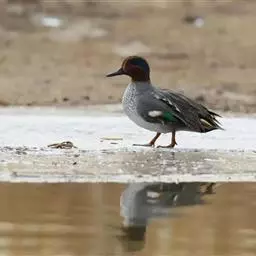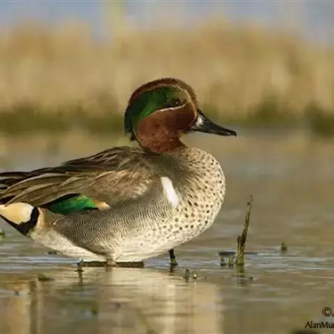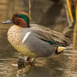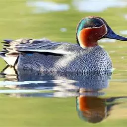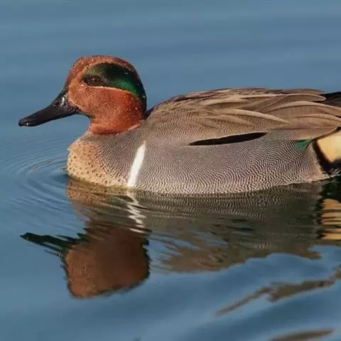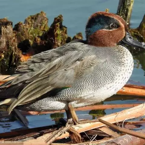 绿翅鸭是小型鸭类,体长37厘米,体重约0.5千克。嘴脚均为黑色。雄鸟头至颈部深栗色,…