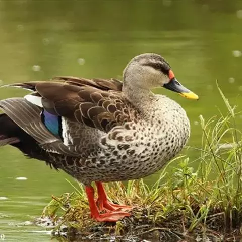 斑嘴鸭是雁形目鸭科鸭属鸟类。李文华,旭日干,中国自然资源通典 辽宁卷,内蒙古教育出版社,2015,第361页雄鸟体羽大部棕褐色;嘴蓝黑色,先端黄色,嘴基至耳区贯眼线黑褐色;虹膜黑褐色,外圈橙黄色;眉纹黄白色,头顶、额、枕部暗棕褐色;上背灰褐色,下背褐色;翼镜蓝绿色带紫色金属光泽;胸部棕白色杂褐色斑,腹褐色;腰、尾上覆羽、尾羽黑褐色,尾下覆羽黑色;跗蹠和趾棕黄色,爪黑色。雌鸟嘴端黄斑不明显,下体自胸以下淡白色,杂暗色斑。因嘴端有黄斑而得名。斑嘴鸭分布于中国各省区,栖息于河流、湖泊、水塘及沼泽等湿地中。善游泳、行走,游泳时尾露出水面,除繁殖期外,常成群活动,也和其他鸭类混群。主食植物的种子、嫩芽和幼苗等植物性食物,也食昆虫、软体动物等动物性食物。繁殖期5—7月,以干草和绒羽在岸边草丛中做巢,1年繁殖1窝,每窝产卵8—14枚,孵化期24天。斑嘴鸭被列入中国国家林业局2000年8月1日发布的《国