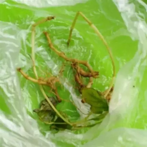 用手捏干水分放入碗中,蒜和干辣椒放在表面。