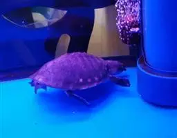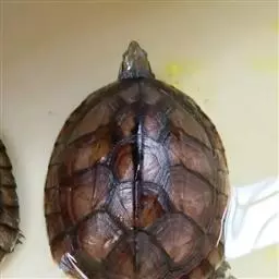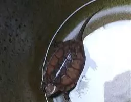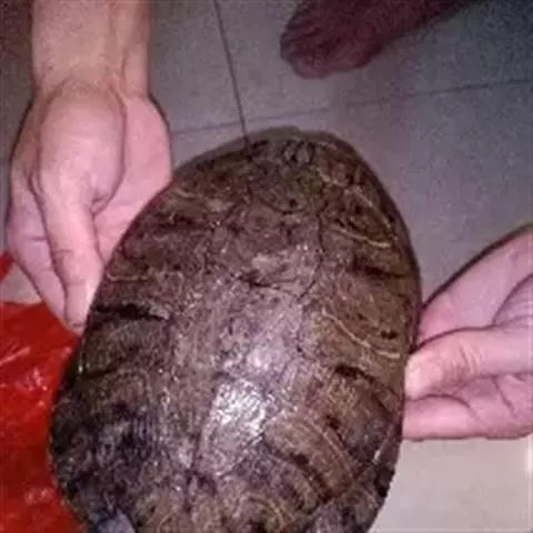 雌雄鉴别:雌龟颈盾较细,尾短,尾柄粗,体长比体宽大20毫米,雄龟无颈盾或颈盾极细小,尾细长,尾端角质突明显。