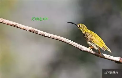 长嘴捕蛛鸟,小型鸟类,体长14-16厘米。嘴长而尖向下弯曲。上体橄榄绿色,眼先和短眉灰白色,…