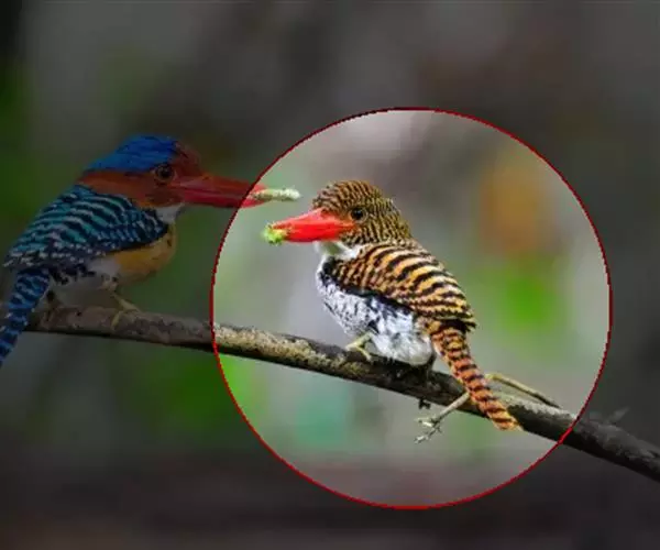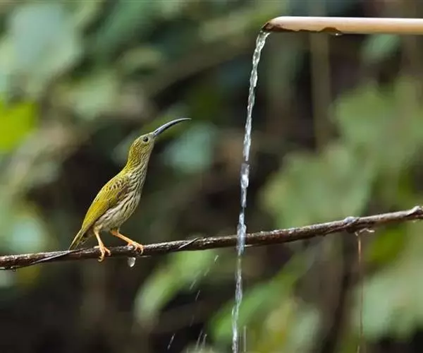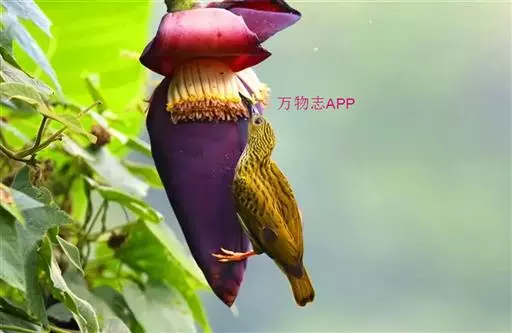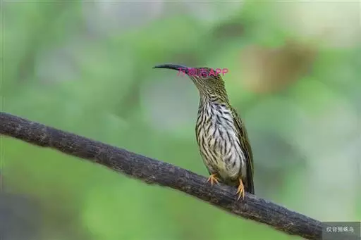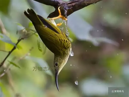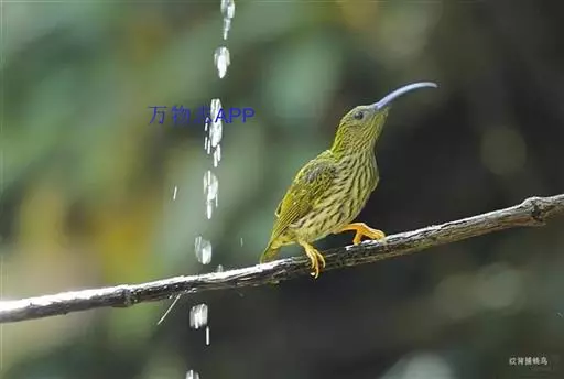 纹背捕蛛鸟(学名:Arachnothera magna):为太阳鸟科捕蛛鸟属的鸟类。是太阳鸟科中体型较大的一种,体重25-45克,体长160-210毫米。嘴粗长而尖且向下弯曲。上体橄榄黄色具黑色中央斑纹。下体淡黄白色满布黑色纵纹,尾具黑色次端斑。虹膜褐色,腿鲜艳橘黄色,嘴黑色。
