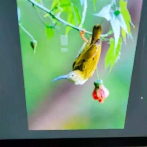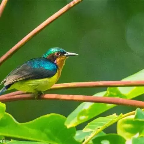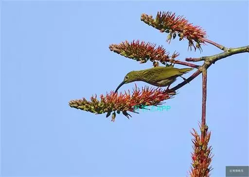 叉尾太阳鸟,雀形目太阳鸟科太阳鸟属留鸟;为小型鸟类,雄鸟头顶辉蓝绿色,上体橄榄绿色,腰明黄色,…