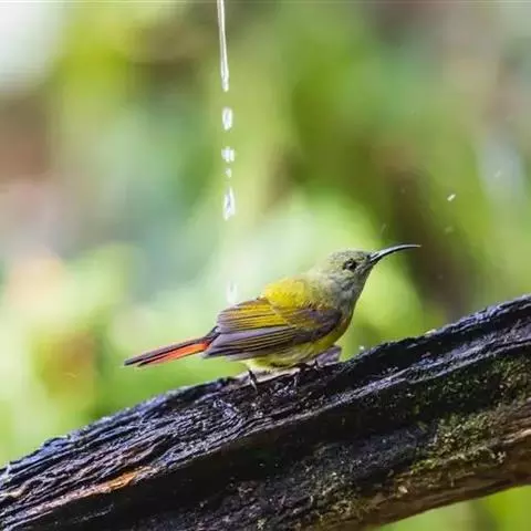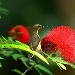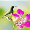 黑胸太阳鸟:小型鸟类,体长9-15厘米。嘴细长而向下曲。雄鸟中央尾羽特长,尾呈楔形,…