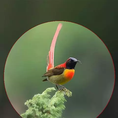 火尾太阳鸟为太阳鸟科太阳鸟属的鸟类。体长20厘米,色彩艳丽。雄鸟红色,具形长的艳猩红色中央尾羽。…