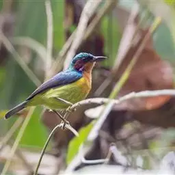 黄腹花蜜鸟是雀形目太阳鸟科花蜜鸟属鸟类。体型较小、喙略短而弯、腹部黄色。…