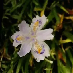 大扁竹兰扇形鸢尾,多年生草本,根茎横生,粗壮,黄白色,节明显;叶黄绿色,集生茎顶,叶片宽剑形,花蓝紫色,蒴果椭圆状,种子扁平,半圆形,棕褐色。分布于云南、西藏等地。