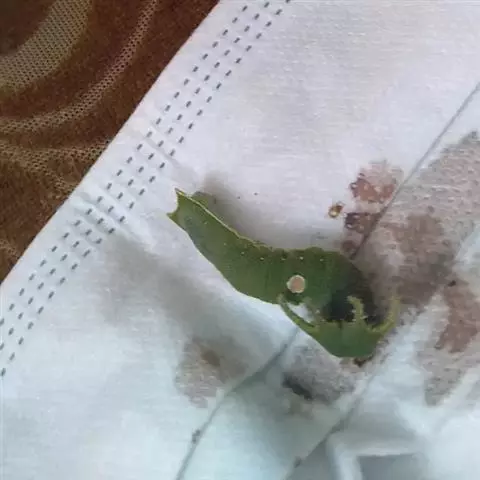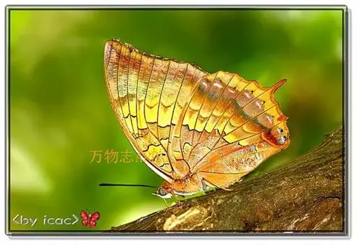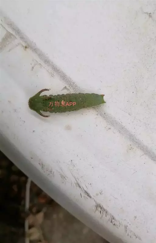 末龄幼虫体色深绿,体长33-62mm,色斑褐色。头深绿色,宽7-8mm;角突 白带螯蛱蝶---幼虫 绿色,长7.3-8.1mm。