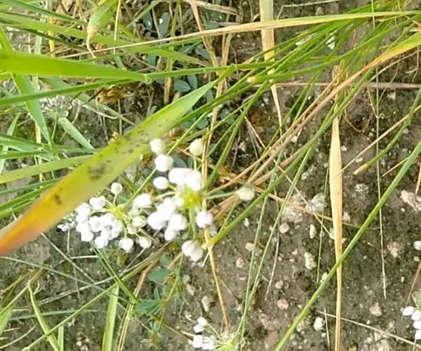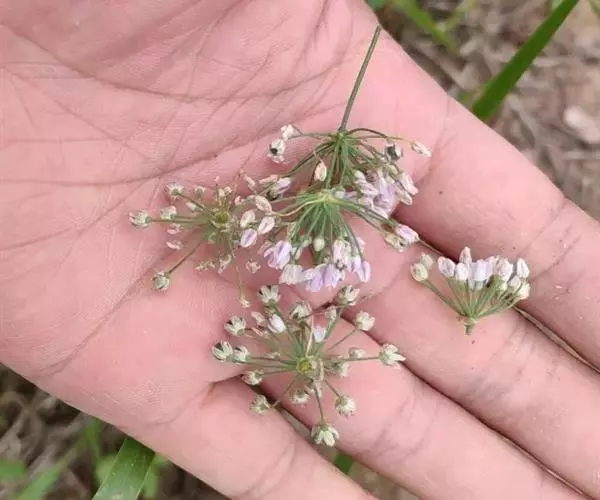 鳞茎数枚聚生,近圆柱状;鳞茎外皮紫褐色、黑褐色至灰黑色,膜质,常顶端不规则地破裂,内皮带紫红色,膜质。叶半圆柱状至近圆柱状,与花葶近等长,粗0.3-1毫米,光滑,稀沿纵棱具细糙齿。花葶圆柱状,具细纵棱,光滑,高10-35(50)厘米,粗0.5-1毫米,下部被叶鞘;总苞单侧开裂,宿存;伞形花序半球状或近扫帚状,松散;小花梗近等长,长0.5-1.5厘米,果期略增长,具纵棱,光滑,罕沿纵棱具细糙齿,基部无小苞片;花白色或淡红色,稀为紫红色;外轮花被片卵状矩圆形至阔卵状矩圆形,先端钝圆,长2.8-4毫米,宽1.5-2.5毫米,内轮的倒卵状矩圆形,先端平截或为钝圆状平截,常稍长,长3-4.2毫米,宽1.8-2.7毫米;花丝为花被片长度的2/3,基部合生并与花被片贴生,外轮的锥形,有时基部略扩大,比内轮的稍短,内轮下部扩大成卵圆形,扩大部分约为花丝长度的2/3;子房卵球状;花柱不伸出花被外。花果期7-9月。