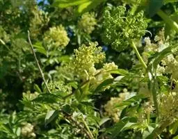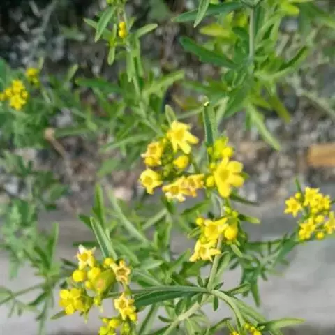 糙叶败酱( Patrinia rupestris Juss.subsp.scabra H.J.Wang),败酱科植物,多年生草本,茎丛生,茎上部多分枝,叶对生,裂片倒披针形、狭披针形或长圆形,聚伞花序顶生,呈伞房状排列,花小,黄色,花冠合瓣,果实翅状,卵形或近圆形,种子位于中央。