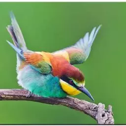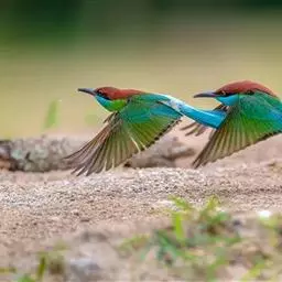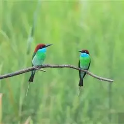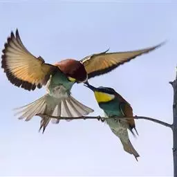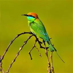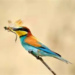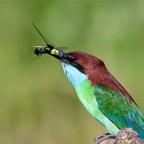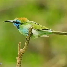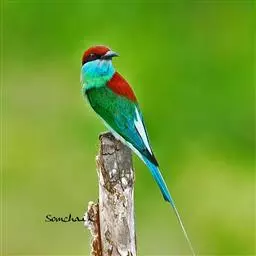 蓝颊蜂虎:是蜂虎科、蜂虎属的鸟类,共有2个亚种。体长27-33厘米,翼展46-49厘米,…