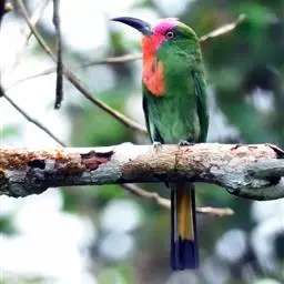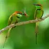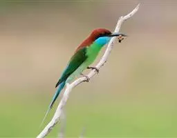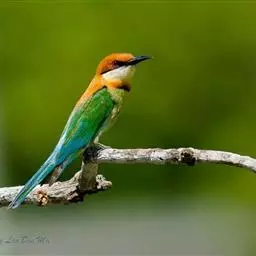 栗喉蜂虎是蜂虎科蜂虎属的鸟类。有热带鸟类羽毛艳丽的特征:喉部是栗红色的,黑色的过眼纹,…