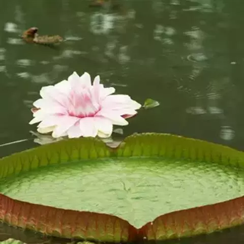 克鲁兹王莲是睡莲科王莲属大型多年生水生植物。叶浮于水面;花单生,初开时白色,逐渐变为粉红色,…