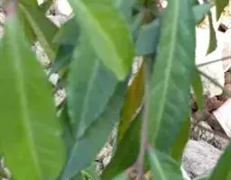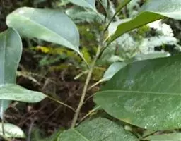叶革质,狭卵状椭圆形、披针形、狭倒卵状椭圆形,长7-12(14)厘米,宽2-4厘米,先端渐尖或尾状渐尖,基部阔楔形或圆,上面深绿色,有光泽,下面苍白色,被白色长平伏毛;中脉凹入,常残留有白色毛,侧脉纤细,每边8-12条,网脉细密,两面稍凸起;叶柄长1-1.5(2.5)厘米,被平伏白色毛;托叶痕长为叶柄长之半或过半。