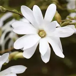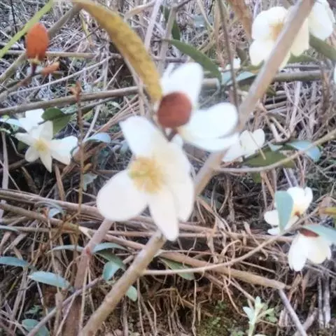 花蕾狭椭圆体形,稍弯曲,被金黄色平伏柔毛,花梗长3-7毫米,直径约3毫米,具1-2苞片脱落痕,密被银灰色平伏细毛;花被片白色,11-13片,匙形或倒披针形,长2.5-3.5厘米,宽4-7毫米,先端常有小突尖;雄蕊长10-14毫米,药隔伸出成长尖头;雌蕊群长约1厘米,雌蕊群柄长约5毫米;雌蕊长约4毫米,子房卵圆形,长约2毫米,密被银灰色微毛,花柱约与子房等长。聚合果长2-6厘米;扭曲。