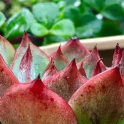 小红衣是景天科、拟石莲花属的一种多肉植物。叶片匙形,扁平细长,叶表具白粉,有明显的半透明边缘,…