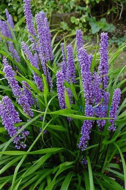 山麦冬在园林中应用历史悠久,由于其叶线形流畅而飘逸,花色淡紫高雅,远观如兰,其根系发达,耐旱,适应性强,可在多处生长,是拓展绿化空间、美化景观的优选地被植物。山麦冬可片状形成绿化带,花期似浪漫的薰衣草,盆栽孤植簇状而立,观赏性不亚于兰而又易于养护。
