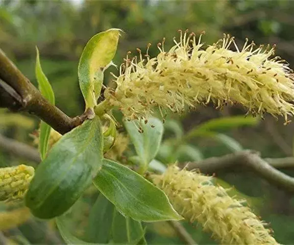 五蕊柳,是柳属灌木或小乔木,高1-5米,树皮灰色或灰褐色,一年生枝褐绿色,灰绿色或灰棕色,无毛,有光择,芽卵形或披针形,披针状长圆,发粘,有光泽。木材可制小农具或作柴薪用,树皮及叶均可提制栲胶,也是蜜源树种。