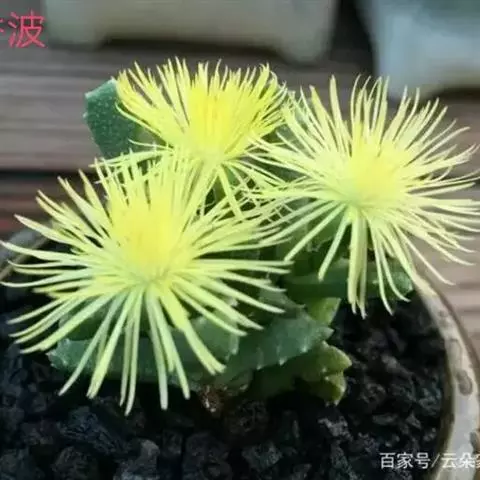 照波,番杏科多肉植物、 此种生长较快,栽培容易,细长的浓绿色叶3厘米左右,开黄色花。…