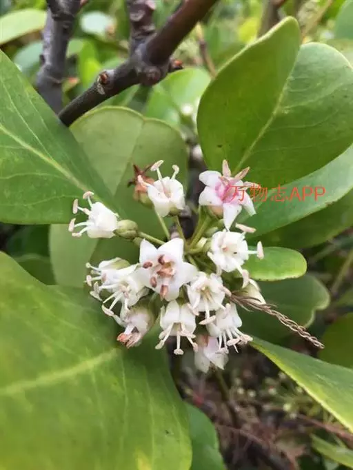 灌木或小乔木,高1.5-4米;小枝无毛,褐黑色。叶互生,于枝条顶端近对生,叶片革质,倒卵形、椭圆形或广倒卵形,顶端圆形或微凹,基部楔形,长3-10厘米,宽2-4.5厘米,全缘,边缘反卷,两面密布小窝点,叶面无毛,中脉平整,侧脉微隆起,背面密被微柔毛,中脉隆起,侧脉微隆起,侧脉7-11对;叶柄长5-10毫米。