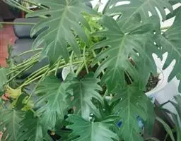 块茎扁球形。叶1枚;叶柄长达1米,有白绿色斑纹;具3小叶,2歧分叉,裂片再羽状分裂,顶生小叶片披针形,下部小裂片椭圆形至披针形。