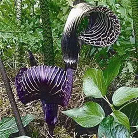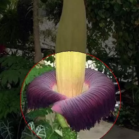 花葶约长达60厘米。佛焰苞卵状矩圆形。肉穗花序短于佛焰苞,下部雌花部分长约1.5厘米,紧接的雄花部分长约2.5厘米,顶端附属体柱状圆锥