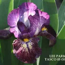 紫苞鸢尾是多年生草本植物,植株基部围有短的鞘状叶。根状茎斜伸,二歧分枝,节明显,外包以棕褐色老叶残留的纤维,直径3-5毫米;须根粗,暗褐色。叶条形,灰绿色,长20-25厘米,宽3-6毫米,顶端长渐尖,基部鞘状,有3-5条纵脉。