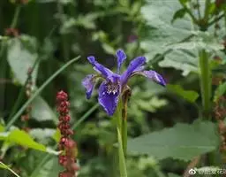 双色野鸢尾为多年生草本植物,叶子呈剑状淡绿色。…