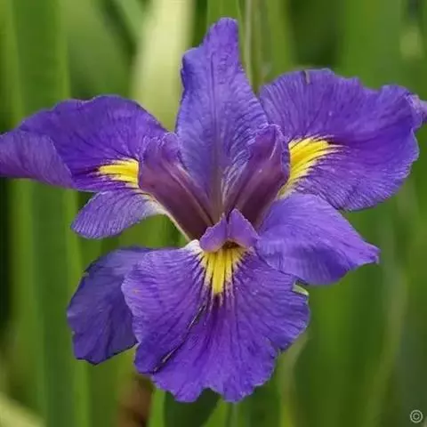 亮叶鸢尾为常绿多年生草本植物。叶面光滑、亮绿色,花茎扁平叶状。原产于巴西。