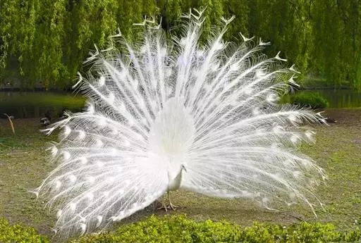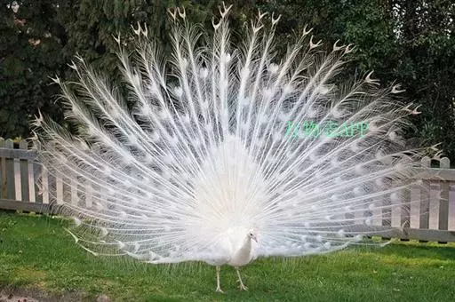 白孔雀,脊椎动物,鸟纲,雉科。其全身洁白无瑕,羽毛无杂色,眼睛呈淡红色