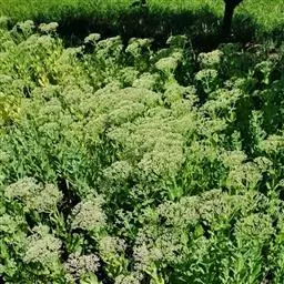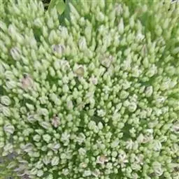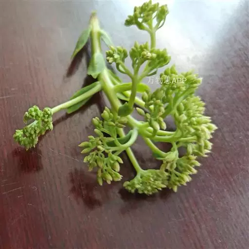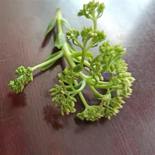 轮叶八宝,又名一代宗《中国植物志》。多年生草本,高40-100cm。须根细。茎直立,不分枝。4叶轮生,少有5叶轮生,下部常为3叶轮生或对生;有柄;叶片长圆状披针形至卵状披针形,长4-8cm,宽2.5-3.5cm,先端急尖,基部楔形,边缘有整齐的疏牙齿,叶下面常带苍白色。聚伞状伞房花序,顶生;花密生,形成半圆球形;苞片卵形;萼片5,三角状卵形,长0.5-1mm,基部稍合生;花瓣5,淡绿色至黄白色,长圆状椭圆形,长3.5-5mm,先端急尖,基部渐狭,分离;雄蕊10,2轮,与花萼对生的稍长于花瓣,与花瓣对生的稍短;鳞片5,线状楔形,长约1mm,先端微缺;心皮5,倒卵形至长圆形,长2.5-5mm,花柱短。蓇葖果。种子狭长圆形,长0.7mm,淡褐色。花期7-8月,果期9月。