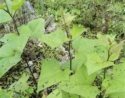 多年生草本,根状茎平卧,有多数较粗的须根。茎粗壮,直立,高(70)100-200厘米,下部直径8-12毫米,具纵条纹,无毛或被疏柔毛。下部叶在花期枯萎,中部叶叶片三角状戟形,稀扁三角状戟形,长20-30厘米,宽20-50厘米,顶端尾状急尖,基部截形或微心形,沿叶柄下延成宽翅,侧生裂片通常2裂,小裂片长披针形,顶端急尖,边缘微凹,具不规则的三角形或披针形的齿,薄质,离基3出脉,侧脉向上分叉,上面暗绿色,被疏短毛,下面淡绿色,沿脉被腺状短柔毛;叶柄短于叶片的2-3倍,具宽1.5-2厘米的翅,基部扩大而抱茎的大耳,上部叶渐小,具短叶柄,下部叶1-2,与中部茎叶同形,但较狭,三角状戟形,具2-3浅裂,或侧裂片边缘有较小的齿。