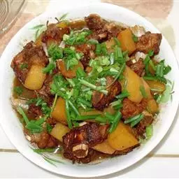 3.捞出,放碗里,上屉蒸10分钟左右,取出扣在盘里。