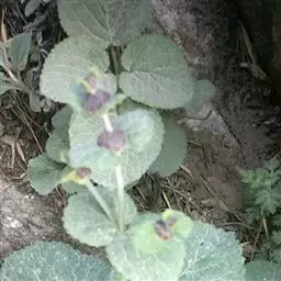 一年生或二年生植物。茎高10-30厘米,基部多分枝,上升,四棱形,具浅槽,常为深蓝色,几无毛,中空。茎下部叶具长柄,柄与叶片等长或超过之,上部叶无柄,叶片均圆形或肾形,长1-2厘米,宽0.7-1.5厘米,先端圆,基部截形或截状阔楔形,半抱茎,边缘具极深的圆齿,顶部的齿通常较其余的为大,上面暗橄榄绿色,下面稍淡,两面均疏生小糙伏毛。轮伞花序6-10花,其中常有闭花授精的花;苞片披针状钻形,长约4毫米,宽约0.3毫米,具缘毛。花萼管状钟形,长4-5毫米,宽1.7-2毫米,外面密被白色直伸的长柔毛,内面除萼上被白色直伸长柔毛外,余部无毛,萼齿5,披针状锥形,长1.5-2毫米,边缘具缘毛。花冠紫红或粉红色,长1.7厘米,外面除上唇被有较密带紫红色的短柔毛外,余部均被微柔毛,内面无毛环,冠筒细长,长约1.3厘米,直径约1毫米,筒口宽约3毫米,冠檐二唇形,上唇直伸,长圆形,长约4毫米,先端微弯,下唇稍长,3裂,中裂片倒心形,先端深凹,基部收缩,侧裂片浅圆裂片状。雄蕊花丝无毛,花药被长硬毛。花柱丝状,先端不相等2浅裂。花盘杯状,具圆齿。子房无毛。小坚果倒卵圆形,具三棱,先端近截状,基部收缩,长约2毫米,宽约1毫米,淡灰黄色,表面有白色大疣状突起。花期3-5月,果期7-8月。 [1-2]