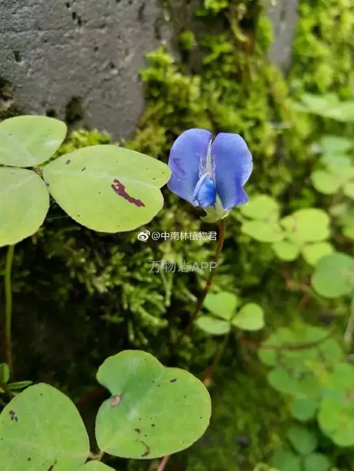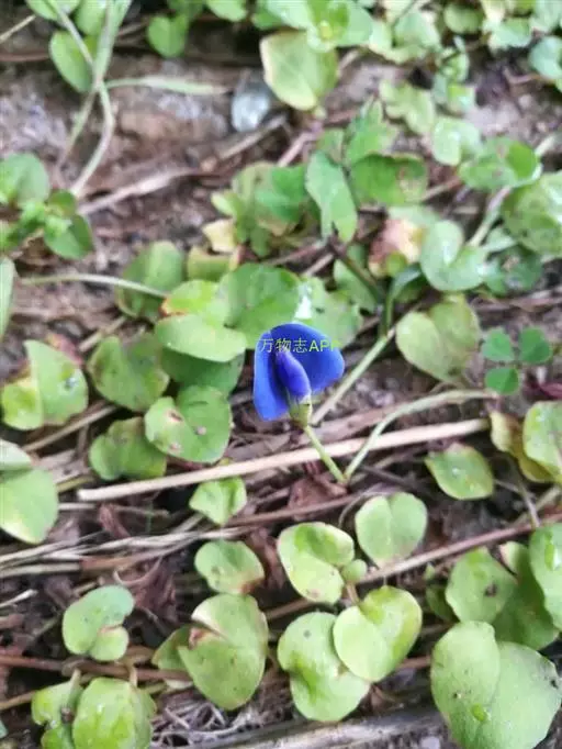匍匐草本,高10-20厘米,被稀疏柔毛。根茎丝状,节上生根,有根瘤。掌状三出复叶;托叶阔披针状卵形,长4-5毫米,膜质,无毛,全缘;叶柄细柔,长达8-15厘米,微被细柔毛;小叶倒心形,长8-20毫米,宽10-20毫米,基部狭楔形,边全缘,或有时呈波状浅圆齿,上面无毛,下面被贴伏柔毛,侧脉4-5对,达叶缘处分叉并环结,细脉网状,不明显,两面均平坦;小叶柄甚短,长约1毫米。伞状花序生于叶腋,具花1-3朵;总花梗与叶柄等长;苞片2-4枚;花长约2厘米;花梗长5-10毫米,被柔毛;萼钟形,长6-9毫米,密被褐色细毛,萼齿三角形,与萼筒等长或稍短;花冠淡蓝色至蓝紫色,偶为白色和淡红色,旗瓣阔倒卵形,先端凹陷,基部狭至瓣柄,无毛,脉纹明显,翼瓣长圆状镰形,先端钝,基部有耳,稍短于旗瓣,龙骨瓣比翼瓣稍短,三角状阔镰形,先端成直角弯曲,并具急尖,基部具长瓣柄;子房线状披针形,无毛,胚珠多数,上部渐狭至花柱,花柱向上弯曲,稍短于子房。荚果线形,无毛,长20-25毫米,宽3-4毫米,先端斜截尖,有种子8-12粒。种子肾形,棕色,有时具斑纹,长2毫米,厚约1毫米,种脐小,圆形,侧生。花果期4-11月 。